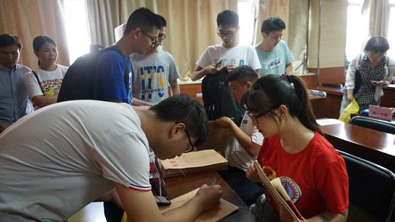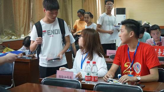 门前的迎新分站,迎新领导组还在二楼报告厅设置了流水式服务窗口,为新生提供一站式服务。报到确认、拍照留念,学位证、毕业证及身份证确认,以及校园卡领取等一系列入学手续均得以有条不紊地进行。对于贫困新生,通过开辟“绿色通道” ,以申请国家助学贷款等方式,先入学,后交费,切实解决困难家庭新生的入学难问题。所有负责迎新的师生各司其职,力求做到周全、高效。通过所有迎新人员的努力,截至9月1日下午,所有新生悉数报到完毕,入学率100%。