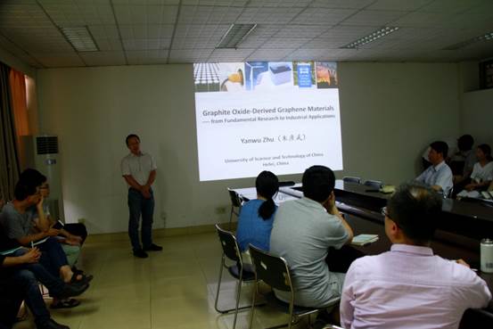 2018年5月14日下午,应特种功能材料重点实验室邀请,中国科学技术大学朱彦武教授莅临实验室进行学术交流,并作题为“基于氧化石墨的石墨烯材料----从基础研究到工业应用”的学术报告。报告会由特种功能材料重点实验室赵勇教授主持,实验室及性爱片