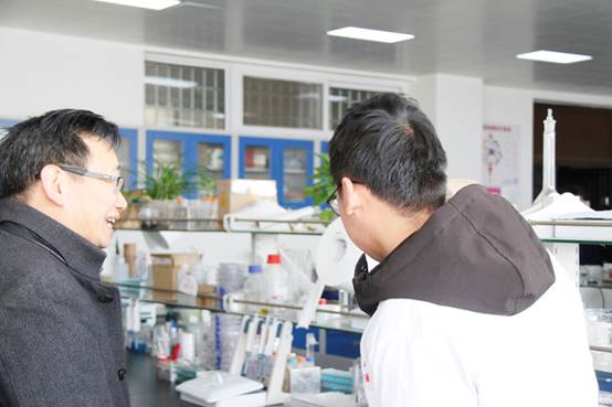 随后,一行人来到了四楼的一间实验室,实验室内有学生仍在紧张地进行着实验。张宝明询问了学生的实验进度及近期生活安排等情况,叮嘱大家一定要遵守操作规范,注意安全。当了解到在放假期间实验室大型仪器设备依旧开放的情况时,张宝明对此表示充分肯定。