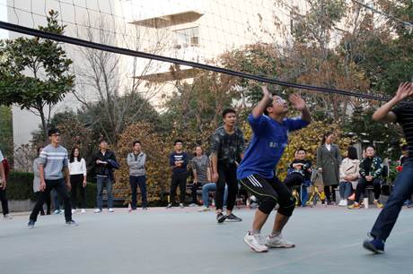 未开赛之前,各组的啦啦队都已就位,准备为本组加油助威,气氛相当热烈。由于各组实力相当,难分上下,所以整个比赛战况激烈,双方队员各施绝技,精彩的扣球、拦网引来阵阵欢呼。师生队员互相配合,相互鼓励,奉献了两场精彩绝伦的比赛。