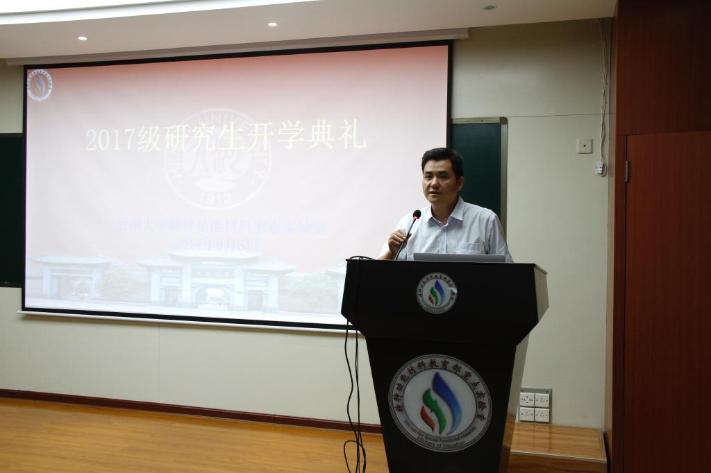 张霖首先致辞。他为新生介绍了实验室的基本情况,科研方向有特色、有亮点;师资力量强大,高层次人才在省内首屈一指;实验仪器设备齐全;学术成果丰富。他说,开学典礼代表大家的人生又进入了新阶段,掀开了新篇章。研究生阶段是从性爱片