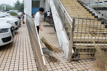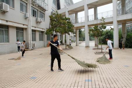 参与打扫卫生的学生在辅导员杨坤鹏的带领下,分工打扫卫生区,捡拾垃圾、铲除杂草,清洗门窗,规范实验室门口自行车、汽车的停放。虽然此次卫生打扫活动范围广、时间紧、任务多,但是学生们分工明确、团结协作,快速高质量的完成了任务。在大家的不懈努力下,实验室周边继续保持着干净整洁的面貌,和花木扶疏,枝繁叶茂的自然环境相得益彰。