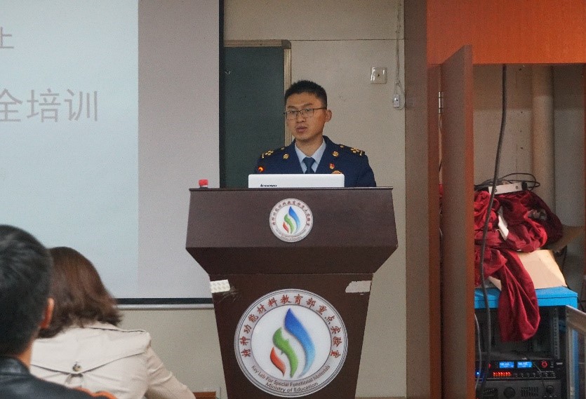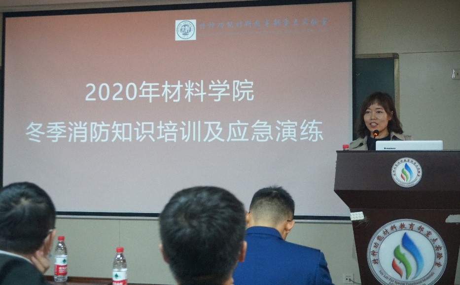 活动开始,由张四海科长向师生们做消防知识培训。他结合近年来发生的火灾案例,以视频、图片及文字的形式生动地阐述了普及消防安全知识提升消防意识的重要性。同时从“防火”、“灭火”、“逃生”、“自救”四个方面详细介绍了火灾的形成过程、自救逃生的方法以及灭火器的种类和操作方法等一系列消防知识。本次消防知识培训深入浅出,引用案例发人深省,与会师生进一步增强了消防意识,掌握了基本消防知识。
