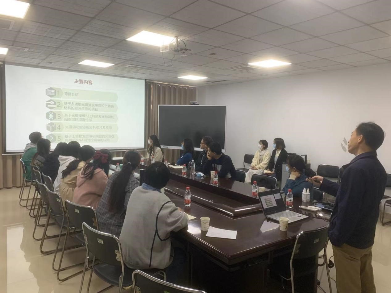 唐宏武老师为大家做了题为“上转换发光材料的光镊捕获及在生物检测中的应用”的报告。唐老师首先讲述了光镊的研究背景以及其仪器装置的搭建,建立了一种表征单颗粒上转换材料光物理性质的方法。进而讲述了基于微流控芯片和光镊,结合上转换发光纳米材料,实现了多种肿瘤标志物的同时检测与稀少细胞的精准偏转,以及远程无菌环境下自动化检测和分选目标细胞等方面对其近年来的工作以及取得的成果进行了详细的介绍。报告会结束后,唐老师和与会人员进行了深入的交流,现场气氛活跃,唐老师的解答更让大家受益良多。