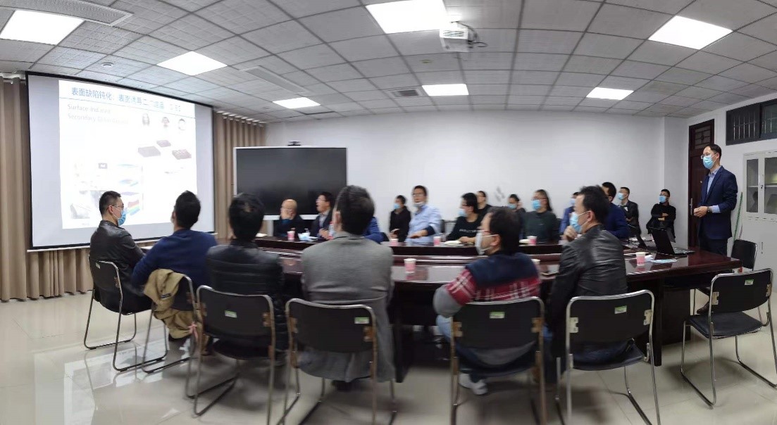 王照奎老师为大家做了题为“钙钛矿半导体发光与光伏器件”的报告。王老师首先介绍了钙钛矿发光二极管和钙钛矿太阳能电池,讲述了其在光伏领域广泛的应用前景。随后王老师对近年来在有机/无机半导体发光与光伏器件的物性评价以及高效光电器件制备方面的研究工作进行系统的描述。
