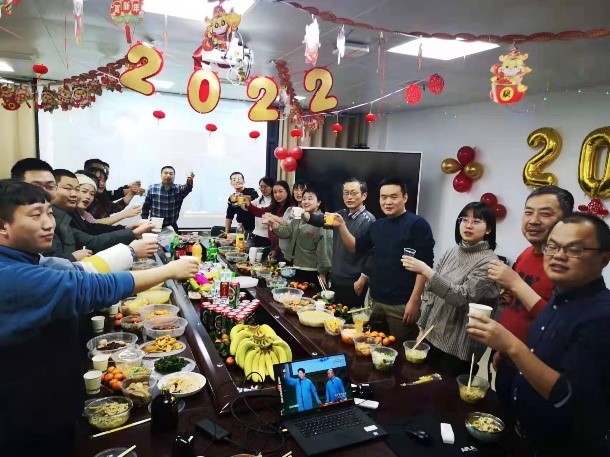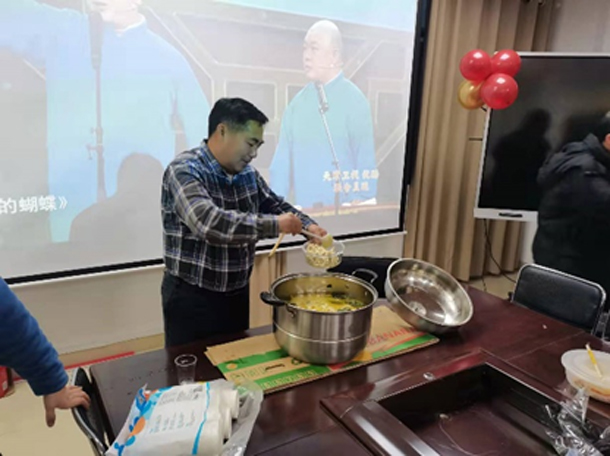 二楼会议室内洋溢着吉祥喜庆的气氛,伴随着欢快的音乐,大家感受到了浓浓的年味。