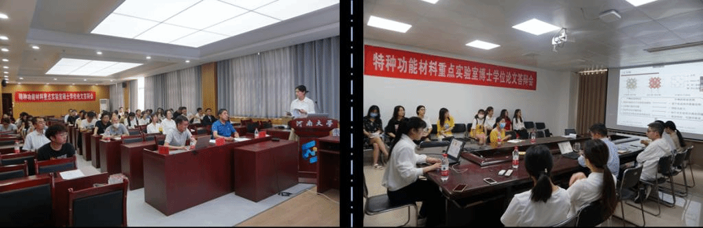 特种功能材料重点实验室成功举行博士生、硕士生学位论文答辩。为切实保障广大师生的生命安全和身体健康,最大限度地减少疫情影响,本次答辩主要采用腾讯会议、线上与线下相结合的形式,通过语音对话、PPT展示、视频共享等方式进行,共有9位博士毕业生和59位硕士毕业生参加。