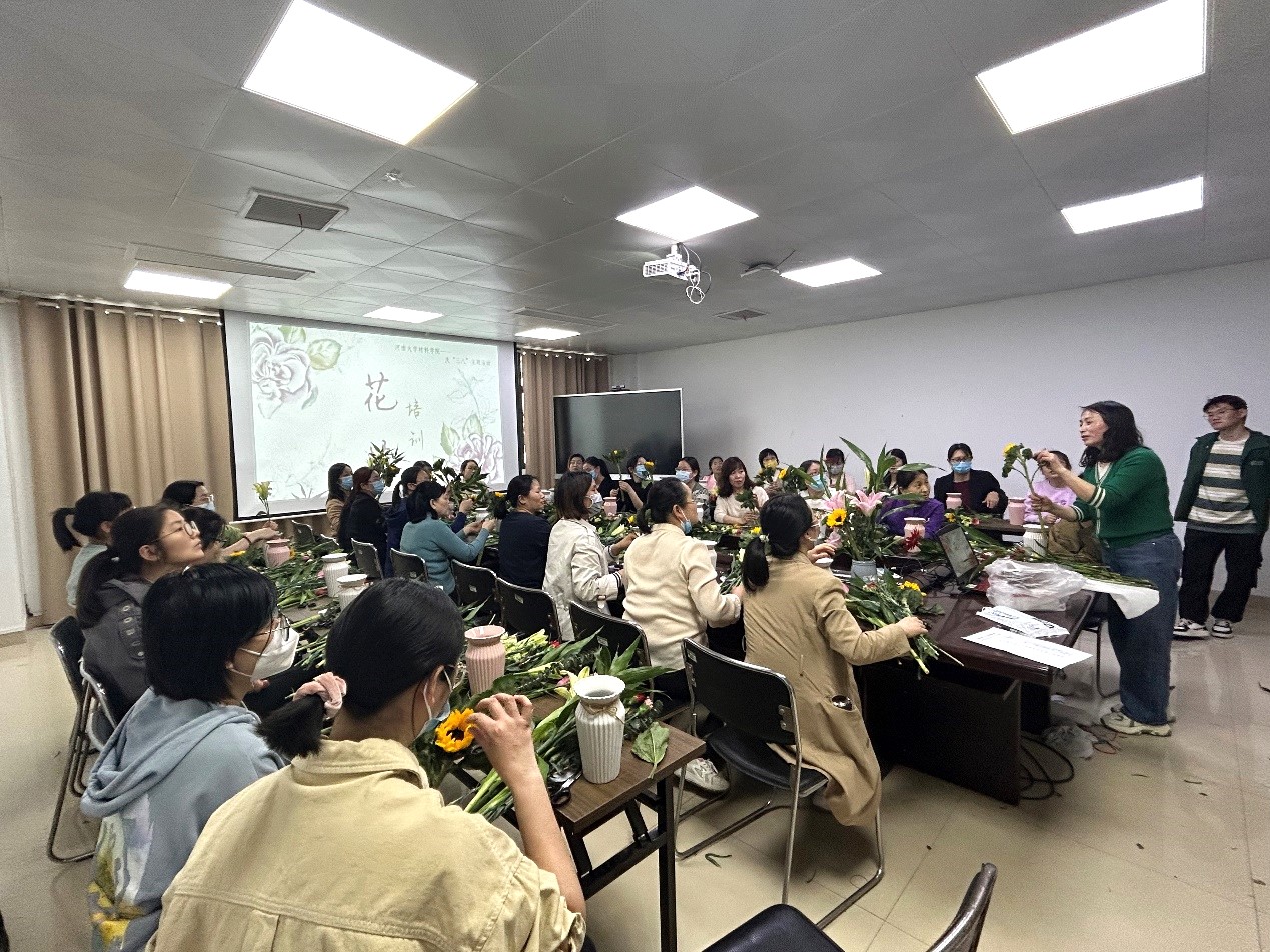 活动邀请了拥有多年插花经验的花艺老师为大家讲授花艺知识。老师首先为大家介绍了此次插花的花材,接着介绍了插花的基本步骤、色彩配搭、修剪技巧。老师一边演示,一边向大家讲解插花的技巧和注意事项。在实践操作环节,女教职工们热情高涨,一边插花,一边讨论,充分发挥想像力和创造力,制作出一件件美观雅致、个性独特的作品,与认真美丽的面庞交织在一起,宛如一幅春天里最迷人的画卷。